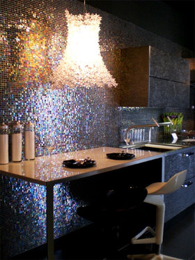平凡な壁も、ベネチィアンモザイクで装飾することにより新たな空間の中心的な存在として生まれ変わります。