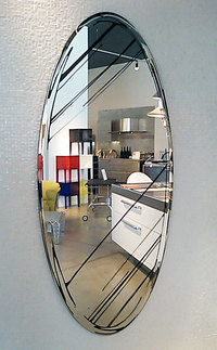 この壁掛の楕円状の鏡はスウェーデン人デザインユニット/フロントによって、平面図から3次元へ感覚的な手書きのスケッチ画を現実的な製品にするという試みから生まれました。