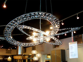その中央から発する光は輪に施されたクリスタルにより反射し空間を彩ります。圧倒的なフォルムは、空間のメインインテリアとしてご使用ください。どの角度から見ても美しいので設置高を選びません。