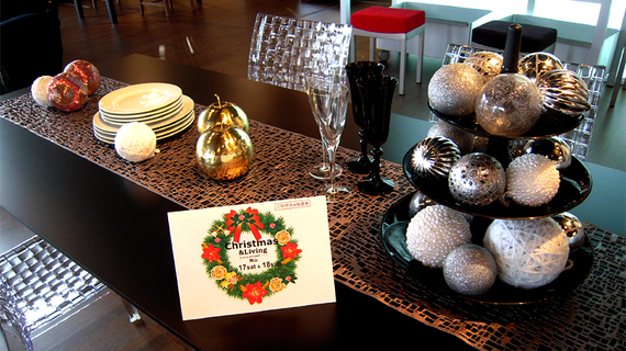 ショールームもM&Dプランニングによるテーブルコーディネートで、すっかりクリスマスの装いです。