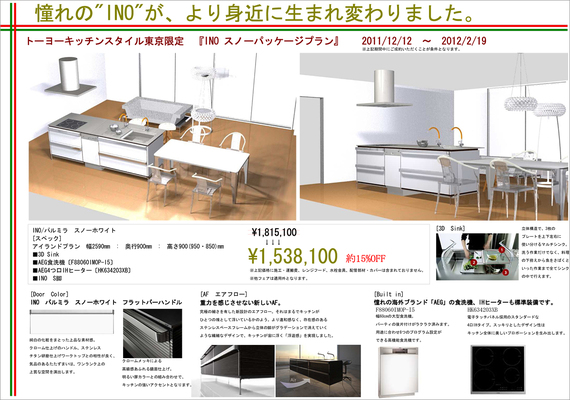 スノーパッケージプランは、フラッグシップモデル『INO』に憧れの海外ブランド『AEGエレクトロラックス』の食洗機、IHヒーターを標準装備した期間限定のプラン。