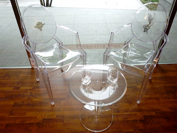 写真はトーヨーキッチンスタイルとカルテルのコラボレーションバージョンに同じフィリップ・スタルクデザインのテーブル『Tip Top(ティップトップ)』クリスタルを組み合わせております。