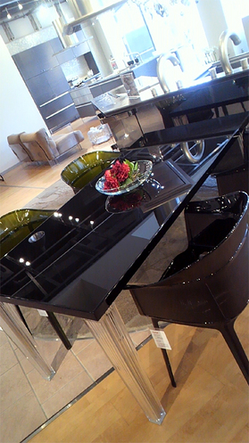 グロッシーな面と透明な面を組み合わせたオリジナリティあふれるテーブル『Top top(トップトップ)』。エレガントに仕上がったテーブルに、シンプル、洗練、優美、そしてレトロな雰囲気を見事に融合させた『Papyrus(パピルス)』のチェアを組み合わせました。プリーツの入ったトップトップの脚とパピルスチェアの表面の細い縦縞模様で統一感もあります!