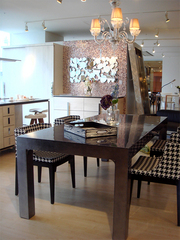 白銀の大地を連想させるテーブルは、1枚1枚職人の手仕事によって、繊細な銀箔を重ね合わせることとで誕生しました。