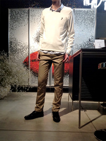 それに合わせたインナーのスカイブルーのシャツが映えます。