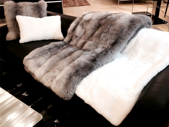 スカンジナビア産のサファイヤクロスフォックス(フォックスの中でも最もシルキーな毛質で毛丈が長めでボリュームがある )とラビットファー(ファーの中でも毛質が柔らかく短いのが特徴)のブランケットやクッションで、本物のファーの質感を体感いただけるアイテムです。