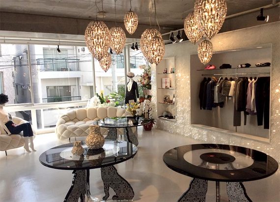 南青山にあるショップは、アーティストの清川あさみさんが、はじめて店舗空間を手がけました。ショップ内は自立した女性の強さが再現されており、近未来の森を思わせる内装は、凛とした可愛らしさを感じられます。