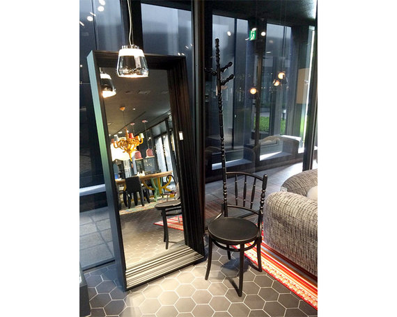 チェアというのは座る以外にも、背もたれにコートをやバッグを掛けてしまうもの。そんな自然に行なってきた行為を明確にデザインされたチェアです。玄関に置いてもおもしろいですね。