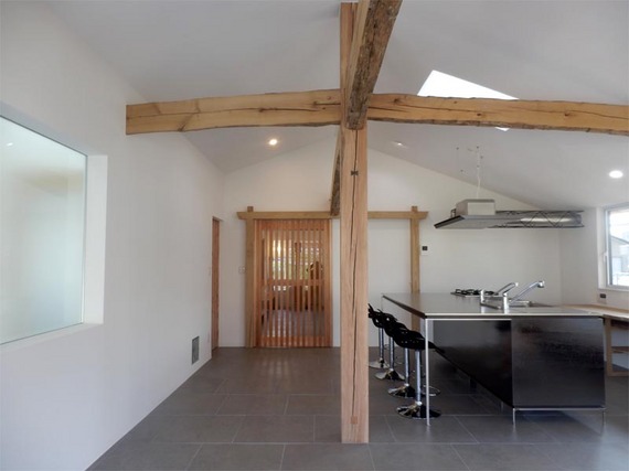 道産無垢の木材を使用しまた安岩石などの地元の素材と地元の大工の手でなるべく賄うことを心がけ不足の中に美を見出す「わび」の概念に貫かれた住宅は、身近にあるものから想像力を働かせ新たなものを生み出す創意工夫に溢れています。