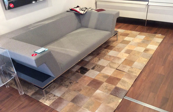 扉は燻した木をメタリックコーテイングしたような独特の風合いで居間に敷き詰められた大判タイルを映しこみ巨大なキッチンにもかかわらず存在感を主張しません。