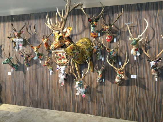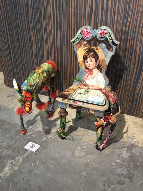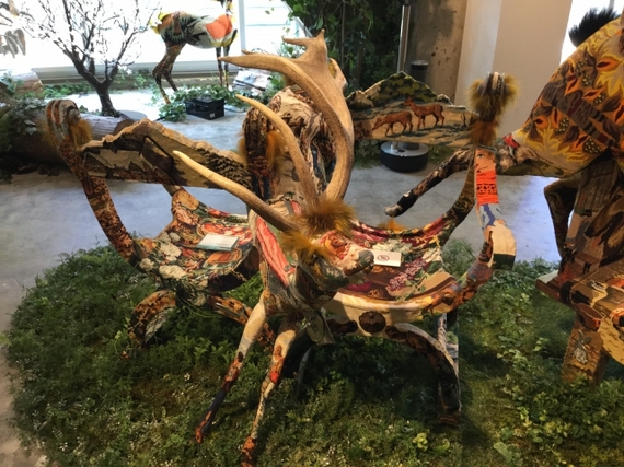跳び跳ねた鹿を中心に椅子を組み合わせた作品で、鹿が2人の距離感を近付けることでコミュニケーションが弾みます。