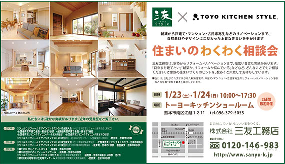 熊本ショールームでは、株式会社 三友工務店様との合同イベントを開催いたします。