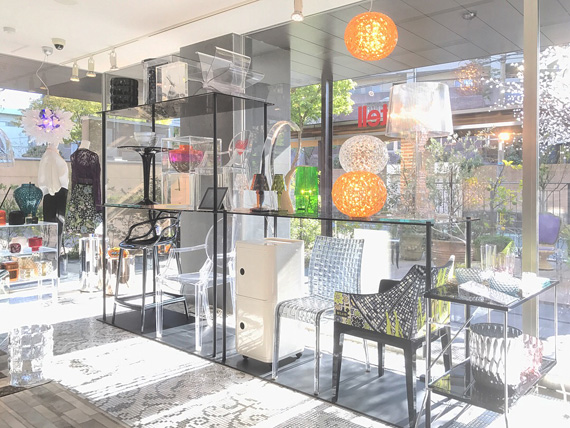 一階、入り口近くに移設し、カルテルの透明感あふれるアイテムがお客様をお出迎えいたします。