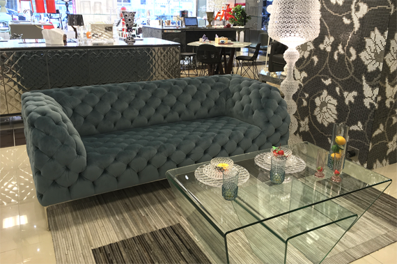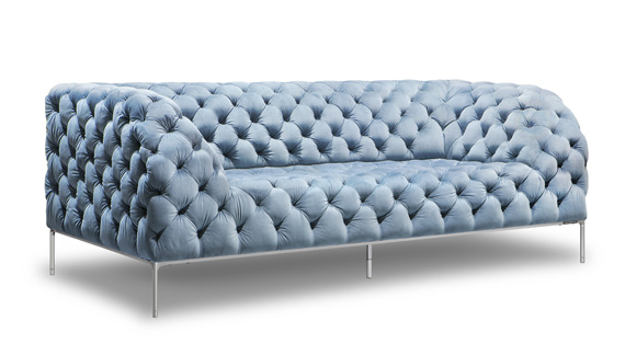 全面に施されたボタンステッチは、均一なクッション性や座ったときの安定感を与えてくれ、背面を低くし肘置きと同じ高さに揃えることで、背もたれが障害にならず、ソファを中心にどの角度からでもコミュニケーションができるよう考えられております。