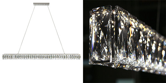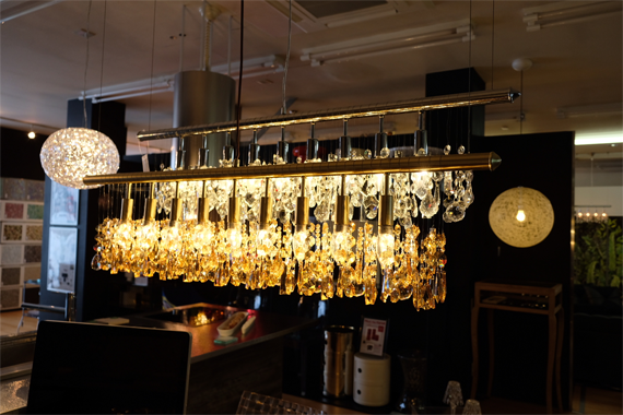 カットガラスのオーナメントが外観に付けられた吊り下げタイプのLED照明です。