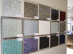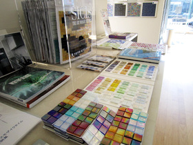 また、ショールーム入り口には『ベネツィアンモザイク/ミックスカラー』を壁一面に貼りました。