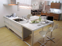 爽やかな印象で人気のホワイトカラーに、アイランドキッチンをレイアウト。TAVOとの組み合わせで家族のコミュニケーションやワークスペースとしても使え、様々なシーンにマッチするフレキシブルなセットです。