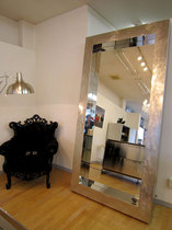 フレーム模様が存在感を際立たせ、鏡枠内部の奥行き(130mm)の深さが、そこに映り込む姿をいっそう立体感にさせるミラーです♪