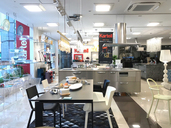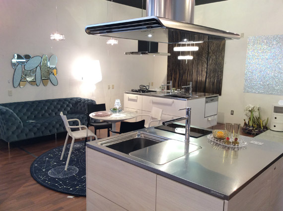 広島に展示されている幅124cm × 奥行120cmの《 i kitchen キューブ Fシリーズ 》