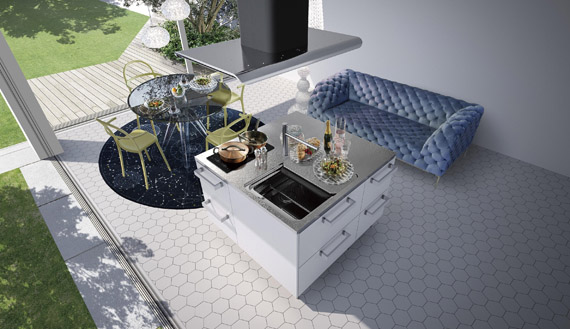 i kitchen CUBE[キューブ]は、都市部での住まいのスモール化と、土地に余裕がある地方でのセカンドハウスなど、日本の住宅事情に合わせた暮らし方を提案します。