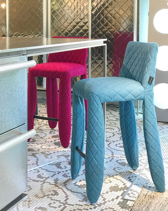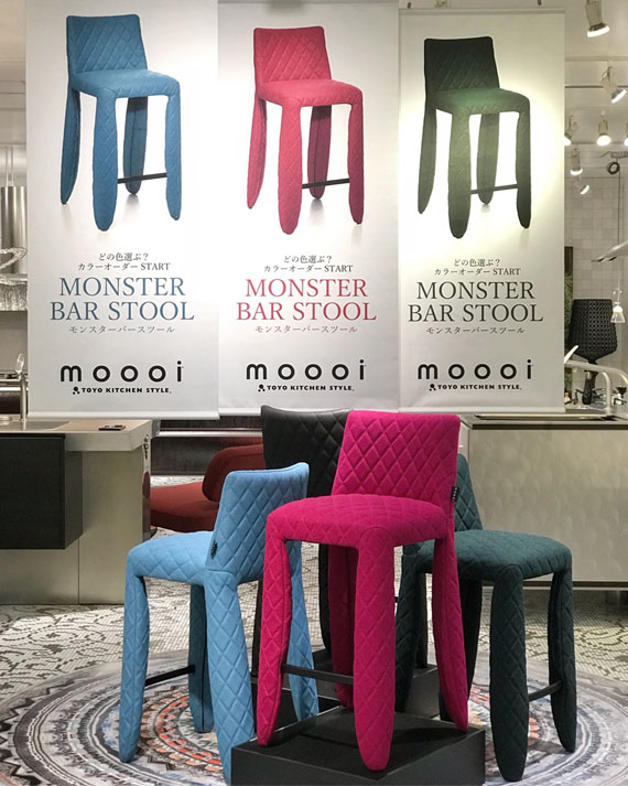 スツールに求められる「座り心地」を追求した快適なキッチンスツール「モンスター バースツール」は、全体がクッションで覆われていることで長時間のくつろぎを可能にします。