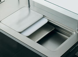 従来の「洗う」「流す」のみのシンクから、「調理」「収納」までこなすマルチシンクは、驚くほどの機能性を実感できます。実際に水を流しながらの体験が可能です。