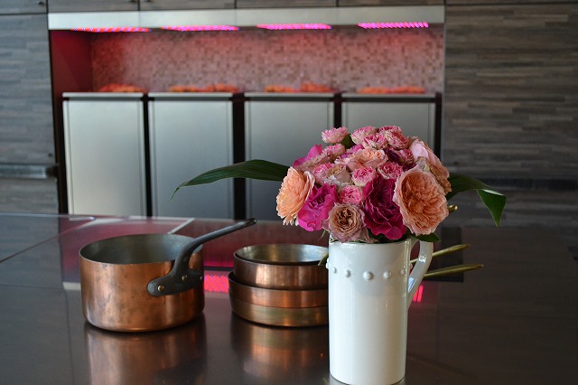 ハーブポットのLEDライトのピンクも加わり、全体に暖かい空間が広がります。