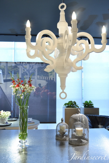 ムラーノクリスタッロのシャンデリア”Murano Crystallo”の光が照らす空間が春を演出します。