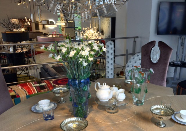 世界で最も権威のあるフランスの老舗クリスタルメーカー「SAINT LOUIS|サン・ルイ」のシャンデリア、ペンダントライト、フラワーベースが贅沢な空間を演出。