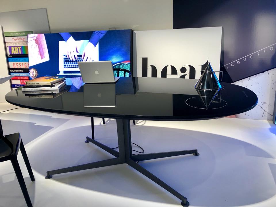写真はIHヒーター付きのテーブル「i-Table」。写真はプロトタイプでIHが二つ付いてます。