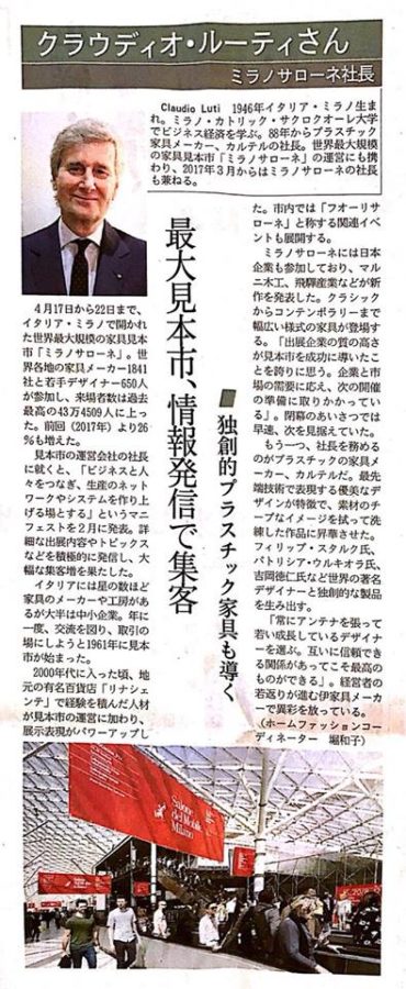 ご存知とは思いますがKartell社のCEO、クラウディオ・ルーティさんは、ミラノ サローネのCEOでもあり、イタリアのインテリア業界の中心人物でもあります。