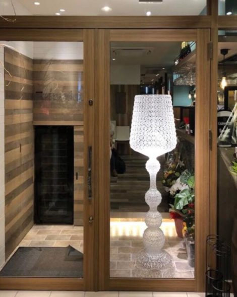 名古屋の堀川沿いにあったビストロ「ジラフ」。移転した新店舗のエントランスでお迎えするKartellのスタンド照明「KABUKI」です。