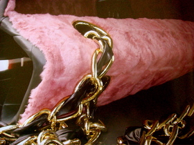 このバッグの両サイドには、これまたTATOOの入った二匹の豚の剥製が控えていた。かなり不思議な雰囲気がこのバッグから漂っている。