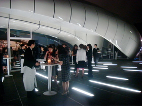モビルアート展を見終わると、そのドームの出口で軽くお酒とフードが出てきて、暫し展覧会の感想などを話しながら懇談をした。ちょうど雨も上がって、ドームを吹き抜ける風が心地良かった。