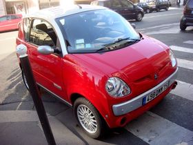 写真の車は AXIAM のA751という車種で、最高速度が45kmに制限されていて、そのかわり一部の国では運転免許がいらないという事だ。一部の国というのは、フランス、イタリア、ポルトガルらしい。