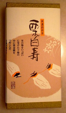 このお菓子は、秋の岐阜県の東濃地方の定番だという話で、この地方のいろいろなお菓子屋さんからも同じお菓子が出ているという話だ。私はこの「干し柿と栗きんとん」のお菓子を食べ較べた事がないのでなんとともコメントがないのですが、もし興味がある方がいたら、ぜひ食べ較べて教えて欲しいと思います。