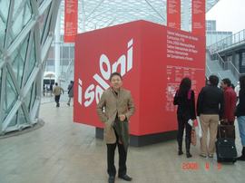 写真は去年のサローネ、メイン会場のフィエラの正面入り口に立つ私