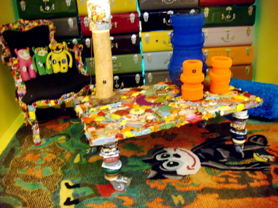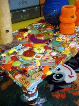 カラフルで不思議なテーブルと椅子。テーブルはカラフルだけというだけではなく、ガエターノ・ペッシェのように色の偶然性のようなものを感じる。恐らく、作る度に色や形は微妙に変わり、二つとして同じ物は出来ないそんな感じがする。