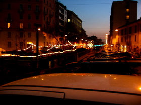 ミラノの運河地区のクリスマス。この運河地区はミラノっ子に人気のスポット。アーキテェクのオフィスや、デザイナーのアトリエ、そして、個性的なブティクが散在する地域です。