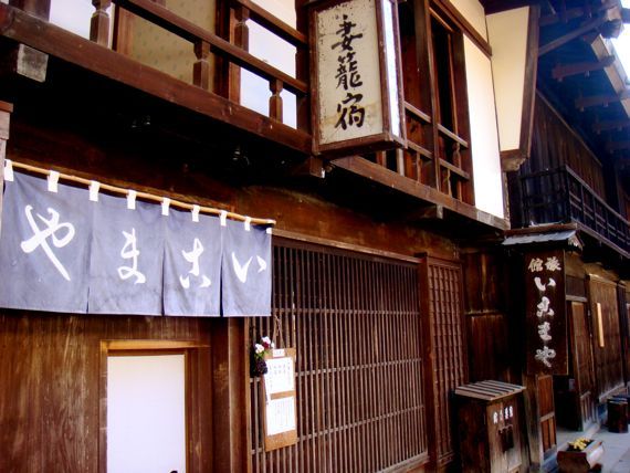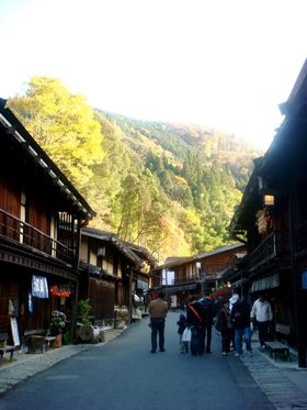 秋の木曽路の妻籠、五平餅、馬刺も美味しい。