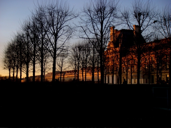サンセットを迎え、刻々と赤みがかかってくる建物をループルからコンコルド広場に向けて撮影した写真。色が変わってくるにつれて、建物の表情まで変化していく様は、いつまで見つめていても飽きない。