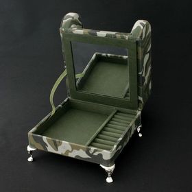 迷彩柄のミニチュア・ソファーの形状のジュエルケースです。猫足ていうのも、なんか可愛くないですか?
