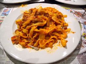 メニューには「ミートソース」という名前も「ボロネーゼ」という名前もなかったが、良く見ると「タリアテーレ・アラ・ラグー」というパスタを見つけた。