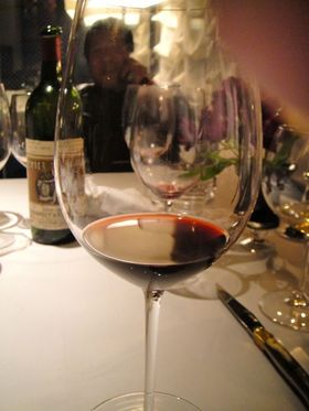 時間が6時半だと思い込んでレストランにぎりぎり駆け込むとテープルにはまだ誰もいなかった。ただ、テープルの上には既に抜栓されたワインのボトルがずらりと並んでいた。思わずお目当てのスクリーミング・イーグルを探すとテーブルの一番端にあった。