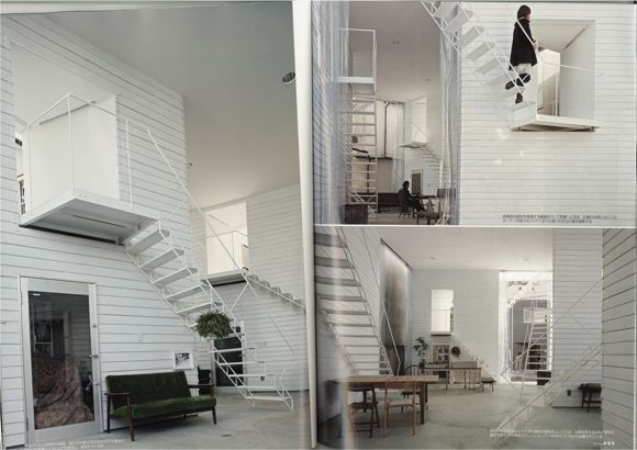 この「ヨコハマアパート」、ちょっと不思議な構造になってて、一階は全て共有部分で、各部屋は全て二階にある。各部屋への階段は写真のように全て共有部分からの内階段になっている
