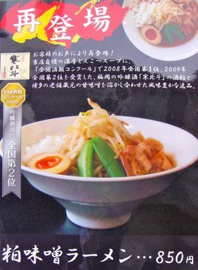 写真がないのは様にならないので、とりあえず味噌ラーメンの看板だけを撮ってきた。