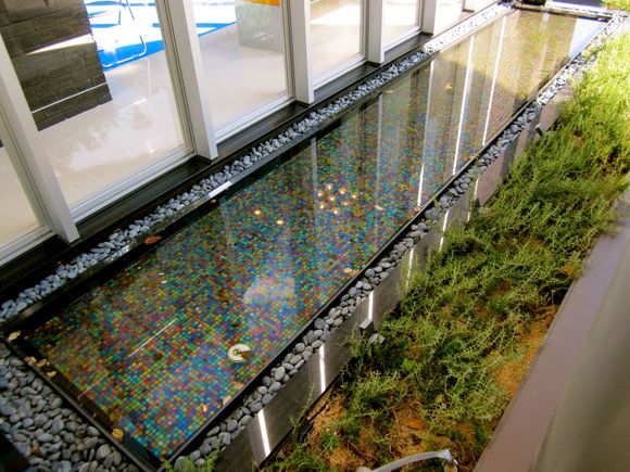 場所は神戸の「ジークレフ新神戸」というマンションのエントランス横の浅いプールの底の部分にモザイクを貼って頂きました。