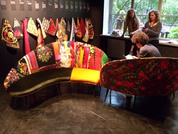 写真は偶然見つけたエスニックな張布のソファー、ちょっとウルキオラ風ということも言えるけど、メーカー名は不明