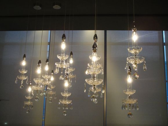 採用したのはモロッコ製のエスニックな真鍮をハンドメイドで叩き上げた「マラケシュ」と名付けられた照明と、小さなクリスタルの 「キラーラ・クリスタル・シングル」 照明でした。