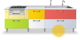 扉一枚一枚のカラーが選択でき、自分だけのカラーリングを施したキッチンを発注出来るというもてのです。